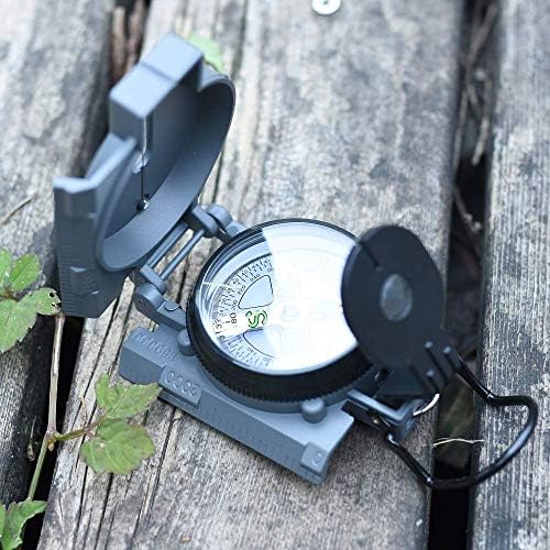 AceCamp Folding Metal Compass, Foldable & Portable Compass, Professional Multifunctional Metal Compass with Metal Sight Line & Magnifying Glass for Hiking, Camping, Backing