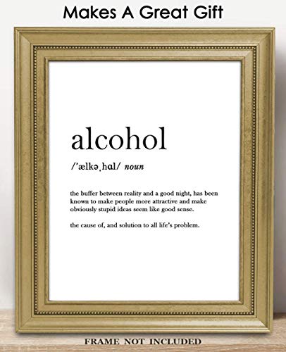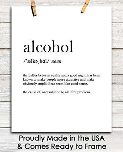 Alcohol Definition Typography Wall Art Print: Unique Room Decor for Girls & Women – (8×10) Unframed Picture – Great Gift Idea