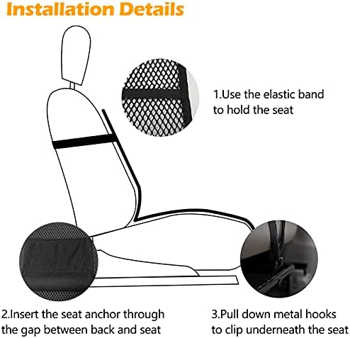 Easy to install – With firm and durable accessories, this auto seat cushions include taps (caught in the seat back), 2 metal hooks (hitch under your car seat), 4 plastic hooks to lock on headrest. Both car with headrest and without headrest can be used. The seat cushion cover also have elastic with convenience. This cool seat cushion just be taken seconds to install.
