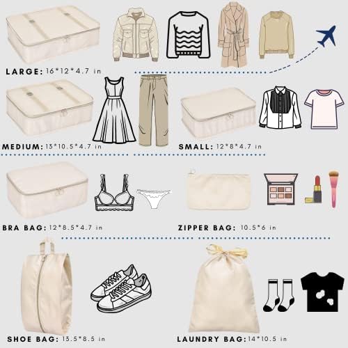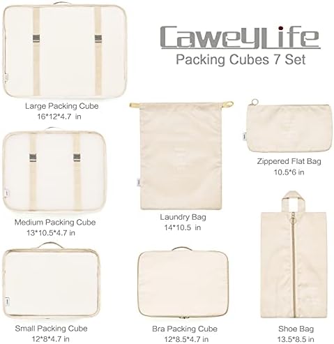 CaweyLife 7 Pcs Set Packing Cubes Touring Baggage Organizers Pack Luggage for 24in Suitcase Journey Equipment (7 Pcs, Beige)