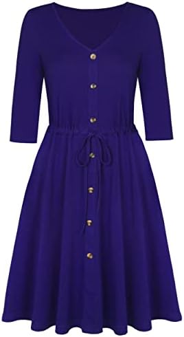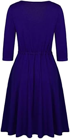 ✔ Fall attire for ladies 3/4 sleeve cotton waist tie v neck a-line informal attire for curvy girls