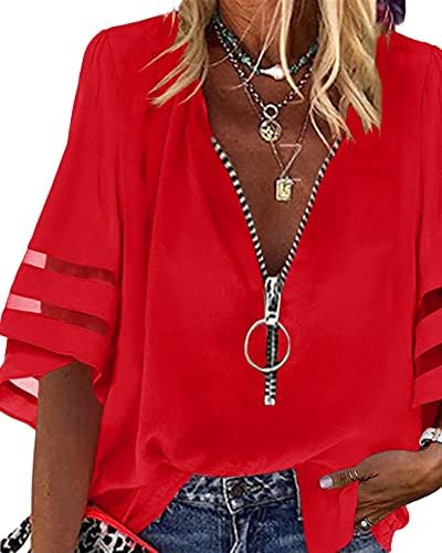 Options: Half Mesh Bell Flare Sleeve or Chilly Shoulder Shirt,Zipper Design Informal Prime,deep V- Neck. It Is Good for Summer time, Spring and Fall.