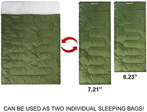 EASY TO CARRY AND CLEAN, LIGHTWEIGHT – Each double sleeping bag comes with a compression sack with straps, effortlessly rolls up and fits directly into a compression sack, for easy 1-person packing, makes it quite convenient to store and carry to anywhere. These double sleeping bags can easily be wiped clean or machine washed.
