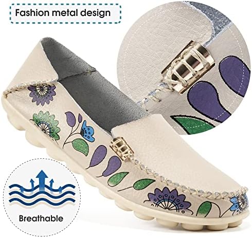 Ecetana Loafers for Ladies Informal Slip On Driving Footwear Comfy Moccasins Leather-based Floral Print Out of doors Strolling Flats Footwear