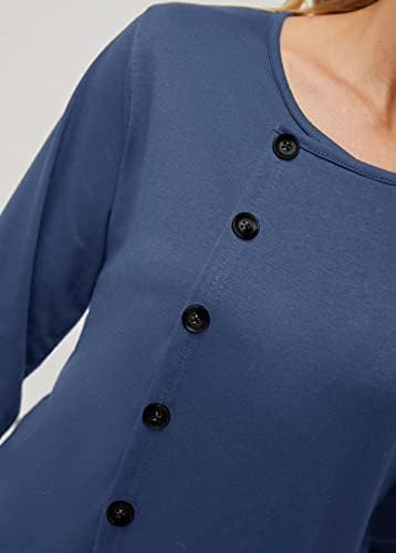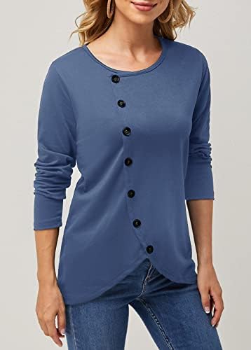 FSHAOES Womens Plus Size Tops Summer Long Sleeve Crew Neck T Shirts Sexy Button Side T-Shirt Casual Loose Cotton Tees