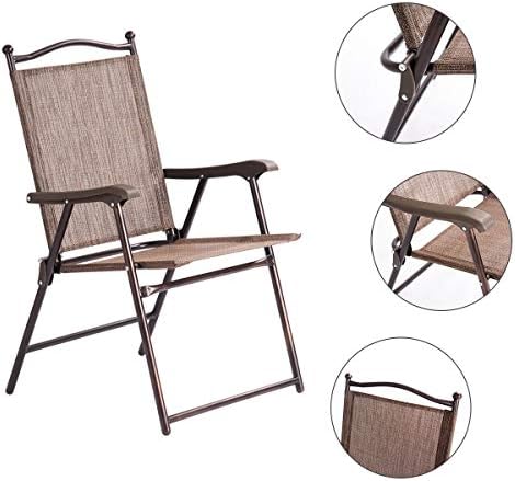 Giantex Set of 2 Patio Folding Chairs, Sling Chairs, Indoor Outdoor Lawn Chairs, Camping Garden Pool Beach Yard Lounge Chairs w/Armrest, Patio Dining Chairs, Metal Frame No Assembly, Brown