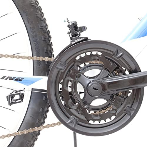 Specifications Color: White-blue, White-black, Black-blue, Black-red Material: Thickened high-carbon steel material, aluminum alloy double-layer wheels. Size: 26 Inch (wheel diameter) Speed: 21-Speed Max Load: 330 lbs Front and rear wheel gear description: The largest wheel on the front wheel corresponds to the number 3 on the left, the highest gear, the smallest wheel corresponds to the number 1, and the lowest gear; the largest wheel on the rear wheel corresponds to the number 1 on the right, and the lowest gear. The smallest wheel corresponds to the number 7, with the highest gear. The bicycle has the highest gear, that is, the largest wheel on the front wheel + the smallest wheel on the rear wheel. The harder it is to step on, the faster the speed; on the contrary, the lower the gear, the smallest wheel on the front wheel + the largest wheel on the rear wheel, the easier it is to step on , The slower the speed. Reminder: The higher the gear, the more difficult it is to step on the pedal and the faster the speed. Conversely, the lower the gear, the easier it is to step on the pedal and the slower the speed. You can adjust the gear according to your needs.