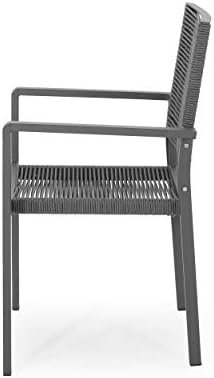 Jean Out of doors Fashionable Aluminum Eating Chair with Rope Seat (Set of two), Grey and Darkish Grey