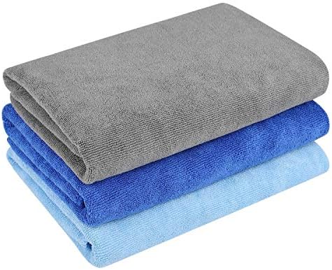 KLNYOO Sport Towel Travel Towel by 100% Microfiber Hand Towel Gym Towel Beach Towel Fast Drying – Many Colors – Camping – Gym – Swim – Surf 3 Pack 16 Inch X 32 Inch Dark Blue Light Blue Gray
