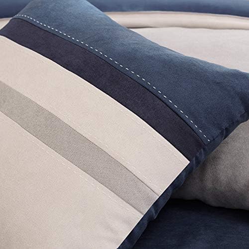 Palisades affords you an informal various in trend bedding. The reverse of the comforter is strong Blue. The comfortable micro suede in Heather gray, Navy Blue and charcoal gray is pieced collectively to create this lovely mattress. The ornamental pillows are embroidered and pieced so as to add an ornamental aspect to this straightforward, but lovely bedding assortment.