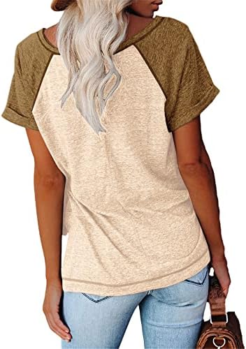 MaQiYa Womens Henley V Neck Raglan Short Sleeve T Shirts Color Block Casual Cotton Tees Shirts Tops