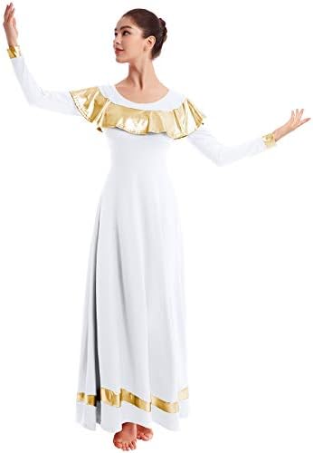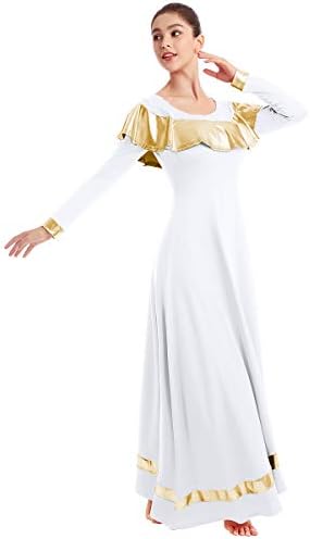 ♣ Girls grownup ruffle metallic gold colour block lengthy sleeve reward dance gown unfastened match full size liturgical lyrical worship tunic circle skirt christian church ballet dancewear costume praisewear for celebration of spirit. This fundamental holy communion dance ball attire, nice to nice to match with a sequins waistband, present the fantastic thing about motion