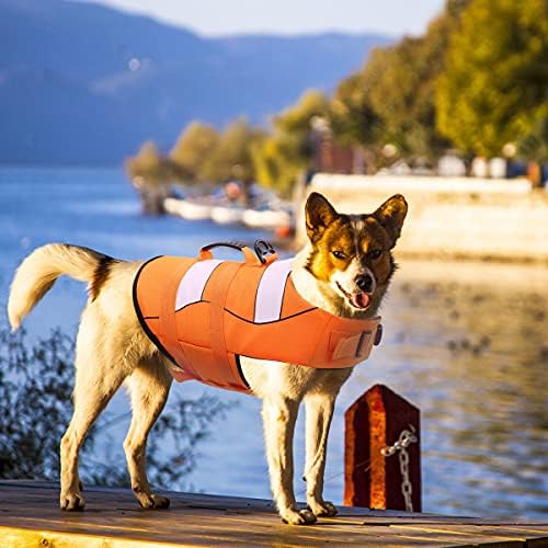 Queenmore Dog Life Jacket Adjustable Rip-Stop Dog Life Vests for Water Safety pet Life Vest with Rescue Handle Safety Vest for Swimming Pool Beach Boating