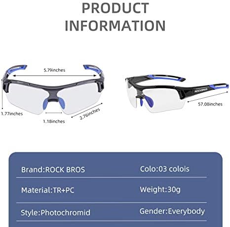LIGHTWEIGHT: This photochromic sun shades solely weight 29 grams. PC made lenses and body course of sturdy RockBros photochromic biking glasses.
