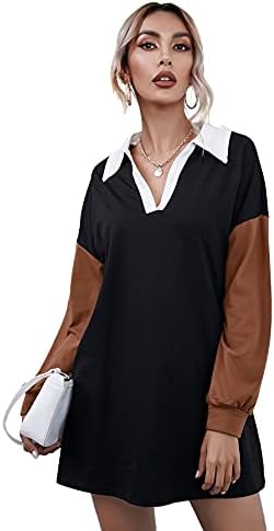 SheIn Women’s Color Block Long Sleeve V Neck Collar Sweatshirt Dress Tunic