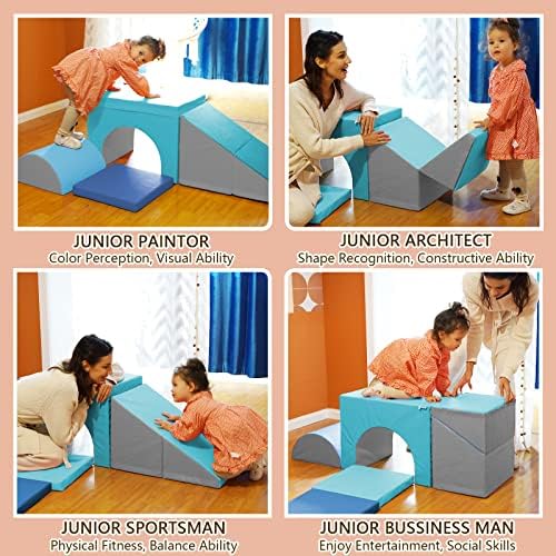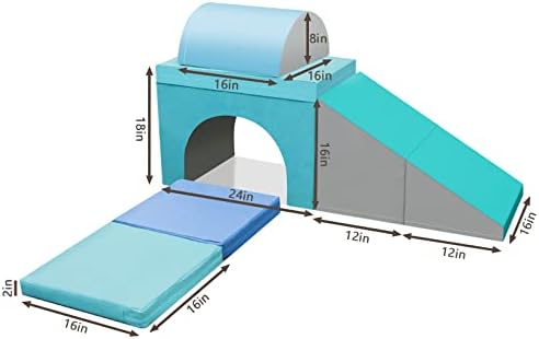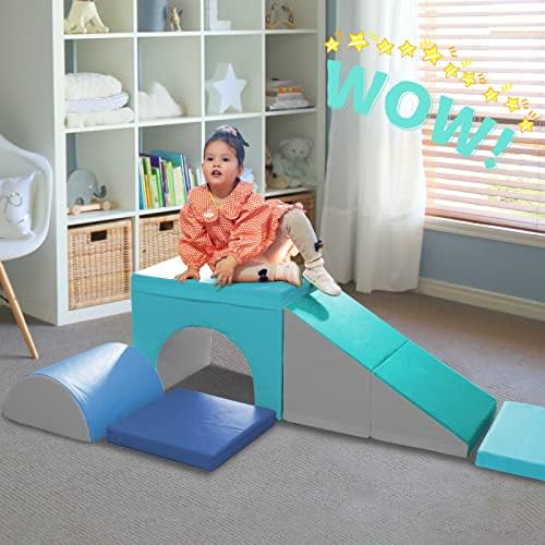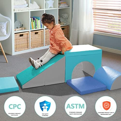 SURPCOS Climbing Toys for Toddlers 1-3, 5 Items With a novel arch bridge design and dual-purpose slide, Child Foam Blocks for infants and toddlers to enhance motor expertise and increase immune system, Blue