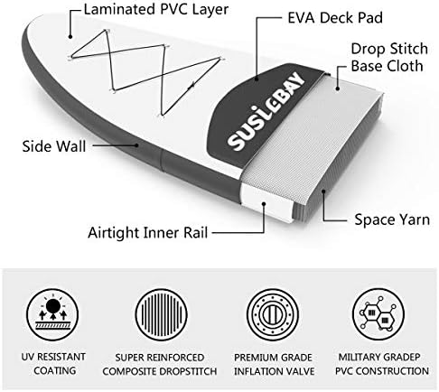 SUSIEBAY Inflatable Stand Up Paddle Boards, Yoga Board, Floating Paddle, Hand Pump, Board Carrier, Waterproof Bag, Drop Stitch, Traveling Board for Surfing Backpack
