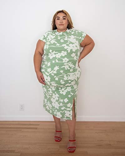 The Drop Ladies’s Smoke Inexperienced with White Floral Print Ruched-Entrance Midi Gown by @itsmekellieb