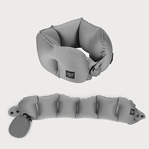 URBAN FOREST Inflatable Neck Pillow,Journey Pillow&Tree Storage Pocket, Quick Inflation&Fast Deflation,2-in-1 Design,Nap Pillow for Airplane/Automobile/House/Workplace (Gray)