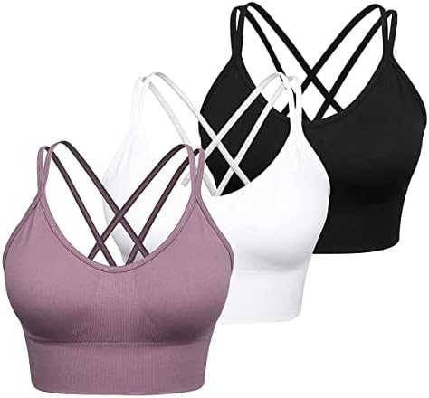 VEQKING 3 Pack Cross Again Sports activities Bra for Ladies Medium Assist Strappy Sports activities Bra Padded Longline Yoga Exercise Bra