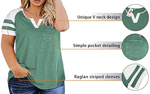 VISLILY Plus-Dimension Tops for Ladies Summer time V Neck T Shirts Raglan Tees XL-4XL