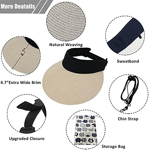 Ladies Straw Solar Visor Hat Vast Brim Summer season UV Safety Seaside Cap Foldable Packale Korean Model