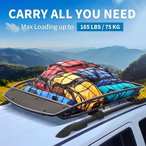 HIGH LOAD CAPACITY: Aluminum cross bars with a powder-coat finish feature anti-corrosion, lightweight, and sturdy enough to carry up to 165 lbs(75 kg). No need to worry about heavy luggage. High clearance is designed for a wide range of accessories